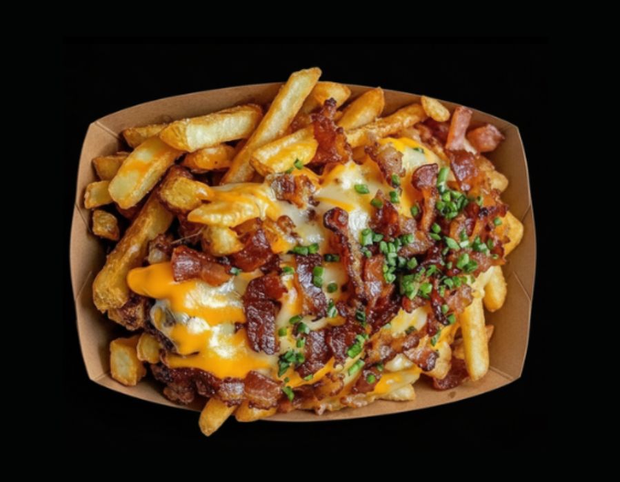 (GRANDE PORTION DE FRITES MAISON) FRITES MAISON, SAUCE CHEDDAR, BACON FUME