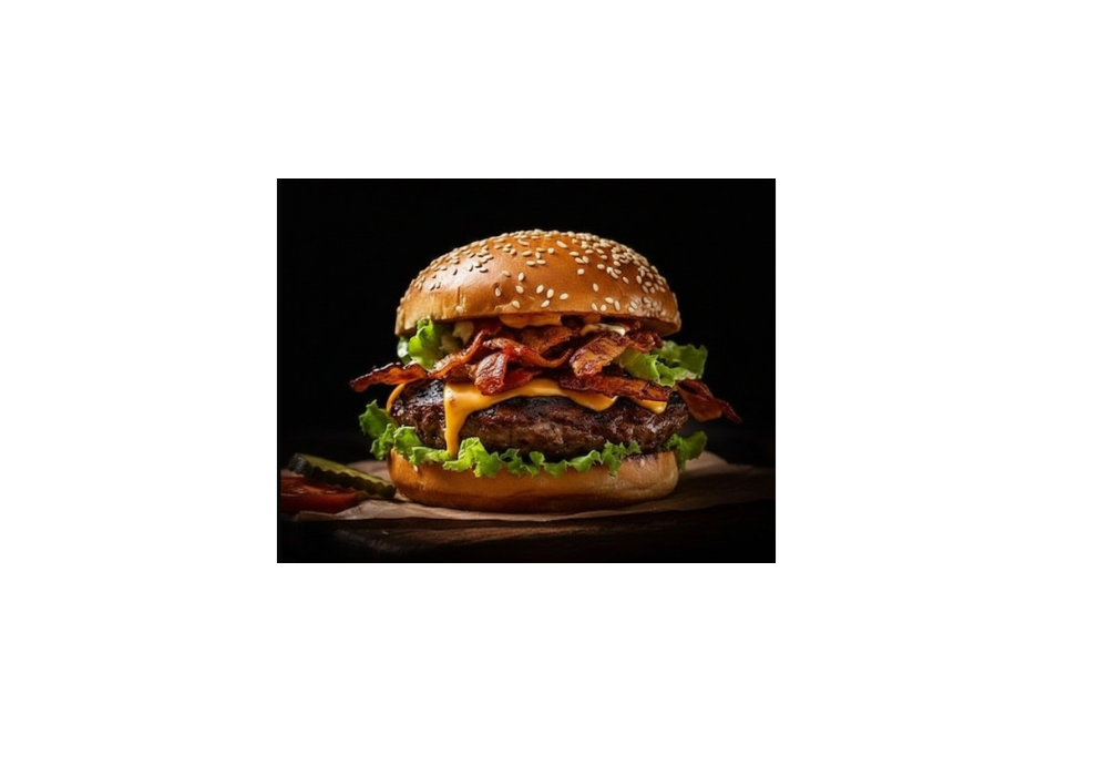 Steak 90G(Halal), Cheddar Tranche, Bacon, Chili Corn Carne, Poivrons, Grille, Avocat, Mais, salade batavia, oignon rouge, oignon caramelise, tomate, sauce biggy, cheddar, oignons frits
